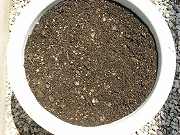 | 植付は、8号のプラスチックの深鉢に行いました。 培土は、栽培用に使ってきた培土を使いまわしたもので、苦土石灰と配合肥料6-6-6(N-P-K)、腐葉土を少々、培土に混ぜました。 鉢上げ後に十分な潅水を行いました。 |