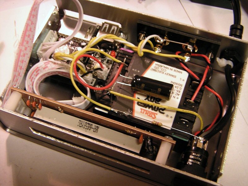 今回一番苦労したのは実はケース加工。SD カードスロット用の細いスリットがうまく開けられず(薄めの板ヤスリが手持ちに無かった)、結局かなり太目の穴になってしまった。ま、普段は目に入らないからこれは不問にする。ともあれ、LED