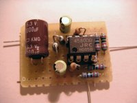 ひとまず完成させてカマデンアンプにつないでみた。しかし電源投入直後のデフォルト状態では出力が小さく、毎回ボリュームアップを行わなければならないことが発覚。これでは不便なのでオペアンプを使ったお手軽なアンプを追加することに。