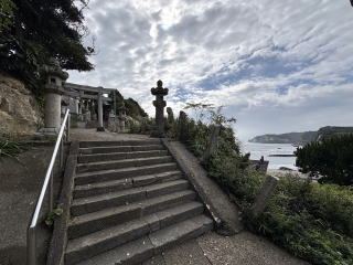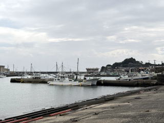 翌日は、ショートハイキングで小浜八幡神社に向かい、参拝した後に岬の上から大原漁港を眺めました。