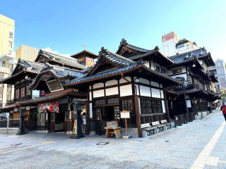 当社は清和天皇(858-876)の御代に奈良大安寺の僧 行教が伊予の国司に請い、道後に八社八幡宮を建立した中の一社で、神功皇后・仲哀天皇御來湯の際の行宮跡に建てられたといわれています。延喜年間につくられた延喜式にも記載されている。