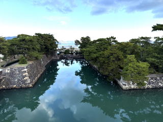 この城は1587年に豊臣秀吉から讃岐一国を与えられた生駒親正が現在地を高松と改め築城を始めた平城(水城)です。瀬戸内の海水を外堀、中堀、内堀に引き込んだこの城は、日本の三大水城の一つといわれています。