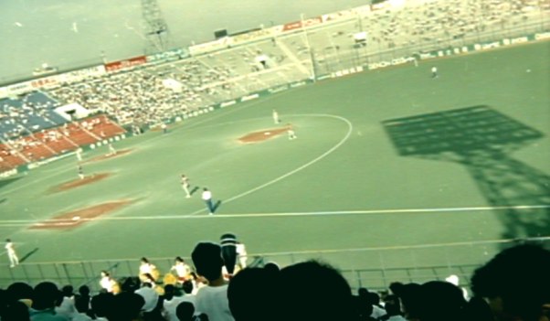 所は川崎球場・カードはロッテ対オリオンズ,と思ったらロッテ対近鉄だった。ロッテオリオンズの語呂だけ憶えてをり,それが全部ひと球団の名前とは解ってゐなかった。まぁ僕の野球知識なんて,こんなもんだ。