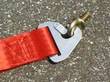 4x4のタイプなのでベルトは4本あります。その4隅には下の写真のようなフックとアイボルト(♀字型のボルト)が付いていて、一般的にはアイボルトは車のフレームに穴を空けて取り付けるようです。つまり、4箇所穴を空けるのが正しい取り付けかたです。しかし、穴空けは面倒なので、他に代用できる穴が無いか調べてみることにしました。