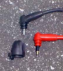 2番と3番のコードは同じ長さなのですが、端子側の形状が違います。長さではなく、形状で区別することになります。ちなみに、L型の端子とI型の端子がありますが、L型の方には、抜け防止ようのキャップがありません。純正についているキャップを外しウルトラに付けて装着します。これも面倒な作業です。いかにコスト削減を狙っているかがうかがえます。キャップはウルトラに取り付けるまえに、よく拭いておきましょう。