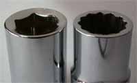 使った感じでは、100円のは、やっぱり精度悪いです。ナットにはめて回してみると、かなりガタがあります(^^;) 本締め用に使うと、すぐになめそうな気配です。現在の使用用途は、仮締めと、足まわりのセットボルトを本締めする時に、反対側のナットを押さえる用途に使っています。できれば、早めに引退させたいと思うほどにガタガタしますが、この程度の用途ならボロも出さずに使えています(^^;) |
