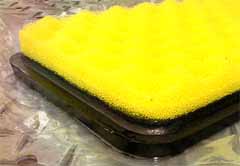 | 2001.2.24 プラグコード、プラグの交換の後の交換でしたが、あまり差が分かりませんでした。以前の純正フィルタは2年間1万km余りを走り、薄汚れてはいましたが、まだ、使えるようでした。あまり劣化していなかったせいかもしれません。吸気音が聞こえるようになるとか、パワーアップが感じられると聞きましたが、そんな感じも無かったです。ただ、サーキットでブン回したら変わるかもしれませんし、音も聞こえるのかもしれません。どっちにしても、もう2年交換しなくて済むので、ヨシとしましょう(笑) 2002.5.13 1年3ヶ月で7000kmくらい使ったので交換しました。筑波のバックストレートで3速の伸びが悪い気がするので、詰まっているかも? という憶測です。実際には両面共にうっすらと汚れている程度、オイルもまだ残っているようでベタベタしています。結構フィルタが効いているのか、インテークのパイプの中は綺麗です。まだ数1000kmは使えるかもしれませんが、洗って再使用できるフィルタではないので交換することにしました。 で、最終レポートは、「イマイチ」、まったく変化は感じられませんでした。心持ち吸気音が大きくなった程度でしょうか? まあ、純正交換型の限界でしょうし、NAなんでフィルタ替えても、さほどの変化は無いのでしょう。 |
