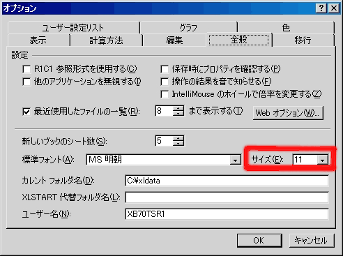 Q.これは、「ツール」「オプション」の「全般」の画面です。