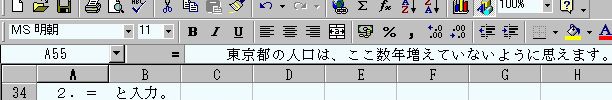 3.クリックしたまま「東京都の人口」まで、マウスを動かす。