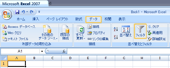 A.ここで、「データ」「フィルター」「オートフィルター」の順にクリック。