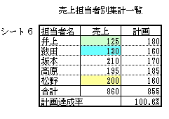 対象営業マンのシートをクリックし、合計欄をクリックして「ENTER」