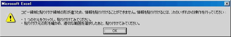 それ以外のセルをクリックして貼り付けると、下のようなメッセー
