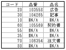 の表の中にないと #N/A (該当しないの意味)というエラー表示を出し