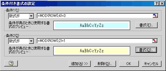 14.「OK」をクリックすると、一行おきに、二色に塗り分けられています。