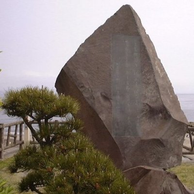 歌碑 海側は若山牧水の歌