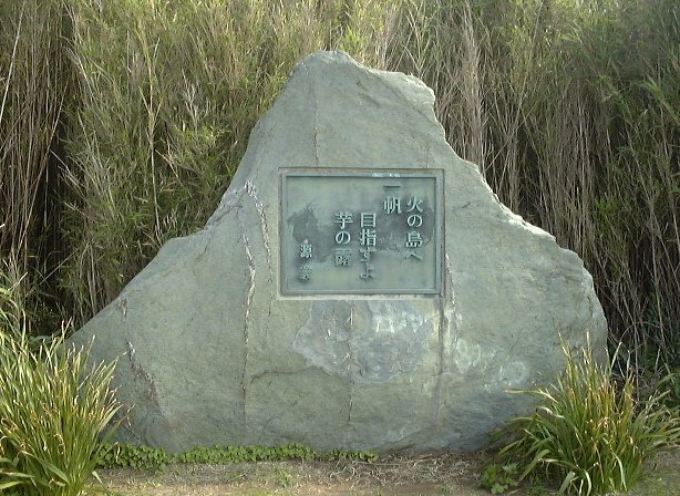 | 火の島へ一帆目指すよ芋の露 城ヶ島公園を少し入ったところに、明朝体で陽刻した四角の銅板がはめ込まれて いる碑石がある。角川源義(かどかわげんよし 俳号:げんぎ)の句碑 である。源義は、自分のつたない筆跡で句碑が建てられるをおそれて、明朝体をつかう ことを遺言したとのことである。かって俳人協会から出たカレンダ−に源義が色紙に書 いた句が印刷されていたし、源義の高弟から贈られた短ざくを愛蔵しているが、人の目 にふれるのを恥じるほどつたない字とは思えない。この碑は碑文と碑の建てられた場 所が一致した数少ない碑の一つであるが、明朝体の碑文であることだけが、惜しまれる。 角川源義は大正6年10月に富山市水橋町に生まれ、神通中学を出て、國學院大學 を卒業した。在学中に柳田国男(民俗学者、詩人)の家で開かれていた民俗学の研究 組織である「木曜会」に出席を許されて、民俗学の研究に励んだ。昭和17年に「悲劇 文学の発生」を刊行した。 戦後、角川書店を創立し、経営に当たった。金尾梅の門(なかお・うめの かど)の主催する俳誌「古志」の幹部同人として句作し、俳論を発表して活躍したが、 27年に俳句総合誌「俳句」を創刊し、俳友石川桂郎に編集をゆだねたが、のちに自ら 編集に当たり、「角川俳句賞」の創設、「俳句」別冊の「俳句年鑑」などを発行して、 戦後の俳句興産の原動力となった。 かもめ文庫 「かながわの文学碑」から ことに三浦半島を愛し、しばしばこの地を訪れている。 昭和50年10月27日没。この日を「終燕忌」と名付く。 昭和51年建立。 平成5年2月1日 三浦市 俳誌「河」同人会 説明板より |