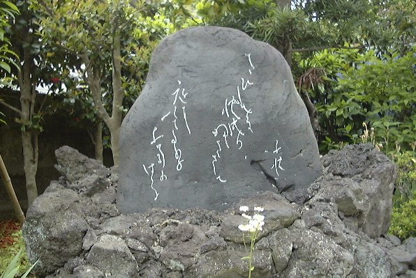 | 碑の歌 寂しさに秋成が書よみさして庭に出でたり白菊の花 この碑は、白秋文学碑として第1号の碑であり、生前白秋が自分の碑の建立に関与 したのは、この見桃寺の碑のみであった。 歌碑は建物の左側の前庭の植え込みのなかに建てられている。 碑文の歌は「雲母集」の中の『見桃寺抄』の一首で、三浦市白石町19−2見桃寺境 内に昭和16年11月2日、白秋自身が臨席除幕した。高さ70センチほどの丸みのあ る 自然石に、白秋の流れるように美しい自筆の万葉仮名降りの筆跡が陰刻されて いる。 白秋は、三崎の人々に建碑を求められたとき、はじめて三崎を訪れたときに作った歌 いつしかに春も名残りとなりにけり昆布干場のたんぽぽの花 を示し、歌舞島に建てることを望んだが、三崎ではコンブが採れないことから、碑文の 歌にかえ場所を見桃寺にしたいきさつがある。 大正2年5月に一家をあげて三崎に転居し、再興するために魚の仲買を営んだが失 敗し、一家が東京に引き揚げるとき、白秋は俊子とともに三崎に残り見桃寺に移った。 白秋が三崎にいたのは、大正3年2月に俊子の肺結核療養のため、小笠原父島へ渡 るまでの9ケ月の短い間だったが、歌集「雲母集」に納められている歌は、この時期の 作品であり『雲母集余言』で 『・・・9ケ月間の田園生活は極めて短日月であったが、私の一生涯中最も重要たる 一転機を画したものと自信する。初めて心霊が甦り新生是より創った。』と言ってるよう に、白秋が立ち直る過程を、歌と詞で示した。』 参考 かもめ文庫 「かながわの文学碑」から 湘南文学 第5号から |