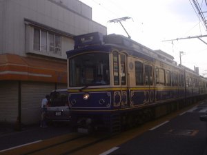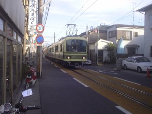 神奈川県の唯一の路面電車・・・ 江ノ島電鉄は藤沢から鎌倉まで の そう長くない距離を(^^; を普段は2両、混雑時は4両 で走る。普通の私鉄だが、藤沢市の 腰越駅付近のこの500Mくらいかな 路面電車になります。 |