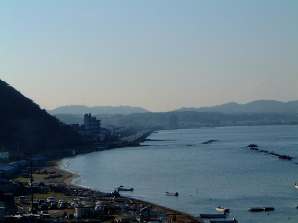 写真中央の直線道路のところが馬堀海岸 その手前の浜が走水海岸