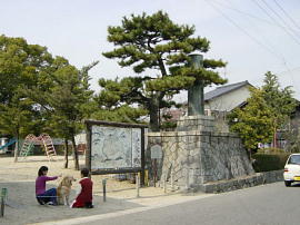 | 旧東海道は,突き当たると右(北)に折れる。 左手にあるのが,知立城址である。 戦国時代には,今川方の城であったが, 桶狭間の合戦で,織田方のものとなった。 |