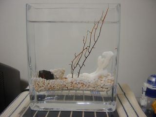 最近お店などで熱帯魚を見ては癒されてるだまっちが お家でも癒されたいといよいよペット購入! 購入したのは、その名もホロホロ。オパエウラ(スカーレット シュリンプ)っとゆーハワイ産のエビちゃんが入ってる セットもん。(写真@) うたい文句はメンテナンスフリー。 「上に空いてる穴から専用の水を蒸発した分足すだけでOK!」 やって。エサやりや水換えなど必要なしだそーだ。 こりゃぁ素人のだまっちにも飼えるわ。 でもちっこいエビやしほんまに癒されるんかいな。 って半信半疑やったけど、実物見てゾッコン。 すぐさま購入。 (写真Bちなみにこの写真のエビちゃんはうんこさん付き(^^;) でもこれメンテナンスフリーっと言ってもいろいろ準備が必要。 まず最初にぶつかったのが、冬の寒さ。 このエビちゃんは15℃〜30℃で生活するらしいので、 寒冬である今年は厳しい。 よく見ると砂の上で動かんエビちゃんがチラホラ。 ネットで調べると、仮死状態か死亡とのこと。 こりゃまずいと、パネルヒーターを購入。 送料込みで2,600円や。 これで仮死状態のエビちゃんも見事復活。 っで、このホロホロでエビちゃんを眺めるのもおもしろくないんで だまっち好みに染めてみた。(*^o^*) 水槽はデザイン性を重視しフラワーベースを、 そこに砂やジャリではなく珊瑚を敷き詰めて、沖縄で取ってきた 白い珊瑚と貝殻、そして富士山で取ってきた溶岩石を置いた。 ん〜こりゃーかっちょええ。(写真A) でも水は自作せず、専用のXウォーターや。 可能な限りメンテナンスフリーを目指し、楽して癒されたいのだ。 っで、エビちゃん達に名前を付け、エビゾー一家として再スタート! ちなみに、ホロホロからフラワーベースへのエビゾー一家お引越しは そりゃーもー大変でした。 その辺の飼育日記についてはだまろぐのエビゾー一家をご覧下さい。