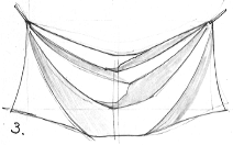 折り紙と布と重力線の関係は理解したよね。ここでは更に大きな布を描いてみよう。大きな重力線をしっかり把握して布の形の変化に対して対応していこう。前項では正方形の布だったよね、それが長方形になっただけなんだ、考え方を整理して効率良くえがこうね。