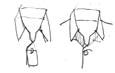 ね、簡単で上手く描けてデッサンも狂わないでしょ。後は男性と女性でボタン止めるところが左右で上か下か確認して描くだけ。そうだなぁーあとややこしいの襟のへりみたいなちょぼって出てるところ、あの辺はややこしいので最初はほったらかしにして、慣れてきたらしっかり描くようにしていこう。