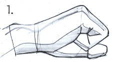手を下に向けてだらりとしているとき親指と4本の指の付け根の部分が透視図をみたらわかるように並ぶ時があるんだ。その一瞬を逃したらだめなんだ。この手のポーズは頻繁に見かけるよ。断面図と透視図の箱の形を頭に叩き込んでおこうね。