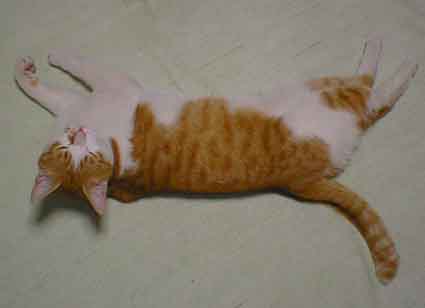 くつろぐネコ。 前足を「にぎにぎ」してます。 他のネコもやるのかな? |
