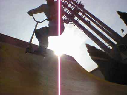 21世紀っぽい1ショット。 宙を舞う「酒屋さん」。 キックボードもこんな遊び方ができます。 場所:北千住アメ−ジングスクゥエアー |