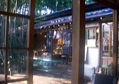 深大寺そばである。そばを1枚食べて帰ろうと決意する。看板に注意しながら南下すると、深大寺が近くなる。その途端、三鷹の住宅地から、田舎の観光地へとスリップする。狭い道の両側に森があり、大きな駐車場を持った観光地独特の匂いがする蕎麦屋がずらりと並ぶ。さらに近づくとみやげ物屋や喫茶店が並ぶ。左手に深大寺が見える。参道の両側にはこれまたお約束の蕎麦屋が並びたつ。赤い布を敷いたベンチがありそこで蕎麦を食すらしい。自転車を止め、山門をくぐる。この山門がまた素晴らしい。茅葺きの非常に古いものである。寺の敷地は広く、後ろに小さな山がそびえている。寺の立地には申し分ない。しばらく散策する。東京の有名な神社仏閣といえば金をかけたきらびやかな仏殿やらなにやらそういった豪奢さが鼻につくのだが、深大寺は違う。そこかしこに文化財に指定されていぢれないからかどうかしらないが、茅葺きの建築があり、本堂もそれなりに古めかしく、信州などに多くある適度に有名で適度にマイナーな観光地寺と同じ空気を持っているのだ。寺の回りにはこれまた茶屋蕎麦屋土産物屋が軒を連ねる。そこからひとつを選ぶ。「くずきり」があるというひとことに惹かれたためだ。