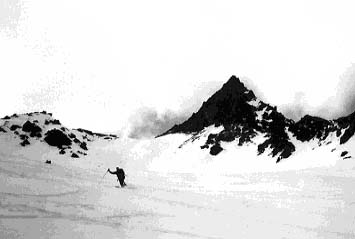 ゴールデンウイークの北アルプスにはスキーを持って行くのがいい。 春のざらめ雪は快適なシール登行を約束してくれるし、下りは痛快のひ とこと。雪のない時期では考えられないようなスピードで山やまを駆け 抜けることができる。ときに山は冬の姿に戻ることもあるが、そのあと には素晴しいパウダースキーイングが待っている。 立山、白馬、乗鞍など、スキーで遊びたい北アルプスの山はたくさん あるが、いちどトライしてみたいのが、立山から槍ガ岳までを縦走する ”日本のオートルート”。 これは長くて、そして面白い。真冬には人を寄せつけないロングルー トだが、春には格好のスキールートに変身する。、ゴールデンウイーク に営業する山小屋も多く、それらを利用して、ちいさなパックで軽快に 行動することができるのもうれしい。 1955年5月3日早朝、立山室堂を三つのグループが槍ガ岳をめざし南下 を始めた。二つのグループはテレマークスキーで、もう一つのグループ は全員が山スキー。利用できる山小屋は限られているので、順調に進め ば全員がおなじ行程をたどることになる。ちょっとした山岳ラリーの雰 囲気だ。 初日はガスと小雪の悪天。ルートファインディングに苦労しながらや っとこさ、五色の小屋にたどり着く。 二日目は高曇りで展望あり。薬師岳越えの長い一日。天気が崩れること もなく大助かり。足が棒になるころ太郎平小屋へ入る。テレマークチー ムの後発二人が神岡新道から北ノ俣岳経由で合流。この夜、雪。 三日目。停滞か? 朝食後、薄日がさしてくる。歓声とともに出発。 まばゆいばかりの新雪をラッセルしながら双六小屋をめざす。黒部五郎 岳のカールを小さな雪崩とともに滑り降り、極上のパウダースキーイン グを楽しんで、四時には、全チーム、暖かい双六小屋へなだれこむ。抜 きつ抜かれつを繰り替えすうちに三つのチームも渾然化し、小屋ではビ ールが飛び交う。 四日目。槍ガ岳を越える日だ。時間切れの数人が新穂高へくだる。槍 ガ岳組はスキーをパックにくくりつけて、西鎌尾根を行く。槍岳山荘で ランチのあといよいよ最後の大滑降、槍沢をくだる。滑りがいのある大 斜面だ。槍沢ロッジでスキーをぬげば、このスキーラリーも終点ま近か 。横尾で休む者、気合いを入れていっきに上高地まで下山するものさま ざまだ。 比較的天候に恵まれ一日の停滞もなく行動できたのはラッキーだった 。何度もこのルートにトライして、悪天に阻まれた人も多いからだ。