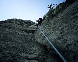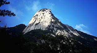 1997-8-26.27 member KUROKAWA,KISYA、KAWASAKI 6月9日 朝いちの大韓航空で出発。金ポ空港まで 1時間半ほど。税関をでると大阪から3 0分まえについた黒ちゃんがいた。川崎 カメは海外での仕事はたくさんこなして いるが、クライミングの遠征は初めて、 とはしゃいでいる。天気はよいのだが暑 い。カラ梅雨の東京と同じような天気。 1時まえに空港からタクシーでトソンサ へむかう。並みのタクシーで2500円ほど 。ウオンは現在0.1をかけると円になる とかでわかりやすい。 トソンサ入り口で1000ウオンの北漢山国 立公園の入園料金をはらって、全荷物を 背負って歩き出す。15キログラムほど 。1時間ちょとをのんびりと歩いて、曾 遊の地、白雲山荘着。おととしと同じよ うな顔ぶれが働いていた。サックス奏者 の金さんは病気で入院中とかで不在。4 時前とあってまだ日が高い。白雲台はま だ踏んだことがないのでハイキング道を 30分ほど、白雲台ピークにたつ。イン スボン峰よりも高い。全山がかこう岩の 岩山、階段が刻まれた楽しいハイキング ルートだ。地元のハイカーが雲霞のごと く押し寄せる人気エリア。もどって水を あびてからビールやマッカリでくつろぐ 。夕食は韓国式、そうそうに就寝。 6月10日 朝いちで向かいのサイコロ岩に行き朝日 をあびたインスボンを撮影。韓国式朝定 食をいただき、9時すぎには大スラブの とりつきに着く。1pを僕がリードしてあ いだに川崎カメがはいる。15年ほどまえ のアゾロのレッドキャニオンというシュ ーズをもちだしてきた川崎さんはスラブ を登った経験はないとのことでとりの水 掻き状態でロープをつかんで登ってくる 。2pをくろちゃんがこわごわとオアシス 目指してのぼる。あいだにはボルトがひ とつ。カマロットをあちこちに穴にかま してプロテクションをとりながらのぼっている。 きのう夕方おそくなって入ってきた仙台 アルパインクラブの住吉さんら3人んも 後続。地元クライマーをぞくぞくと登っ てくる。仙台グループは左のインスBへ むかう。地元クライマーは医大ルートへ 。ぼくらは友情Bを登ることにするが、 ハンブルのトポとあっていまいちルート がわからない。多分これだ、ということ で1pのクラックルートにとりつくが、結 局これがサンチャンジーという5.8のク ラック、けっこう微妙。2pをクロチャン がのぼるが、これも意外ときびしくA0 がはいる。川崎さんはどちらもユマール でのぼってしまう。2p目をフォローした ぼくも核心部ではA0。ここは5.10dの核 心部であることがのちに判明。3pによう やく友情Bに合流。45メートルの5.6のチ ムニーを登る。先行する韓国人クライマ ーの登り方をみていてバックアンドニー の要領がわかったのでおそるおそるまね して登る。彼等はノープロで45メートル いってしまったが、3,4箇所にカマロッ トをきめて、ようやくぬける。おそろし く高度感のあるきれいなチムニーだ。韓 国人クライマーが冷たい水をくれあれこ れ教えてくれる。みんな親切。3pは5.7 のダブルクラックでクロチャンがリード 、バランスが必用なクライミングだ。そ のあとたぬきの腹経由でピークへ。懸垂 で反対側におりる。小屋へもどるともう 3時。3人で写真をとりながらのんびり と登ったせいか、なんと6時間もかかっ てしまった。きょうはこれで充分だね、 ということで水浴びしてからくつろぐ。 前日快晴で、あたたかくそれも疲れる理 由だ。 6月11日 きょうも快晴。のんびり食事して、どこ へ登ろうか、と相談するが、あまりみん なやる気はないようだ。ぼくも、もうひ と汗かくのもなんだな、ということで衆 議一決下山ときまる。のんびりパッキン グして登山口へ。タクシーでインサンド ウのあたりまで、韓式旅館をさがそうと するがうまく見つからず、あちこと右往 左往。結局ソウルホテルに電話して、タ クシーで横付け。チェックイン後、東大 門の安売り店にいき5.10の靴を買う。ニ ュートンが8000円、モカシムが5000円で 半値以下。もうかったもうかったと地下 鉄で帰宿し、夜はインサンドウの韓国式 海鮮店で食事し、就寝。翌朝、牛モツに こみ朝定食で韓国料理の奥義を見せられ 敗退。10時すぎの飛行機で帰国。 (汽車)