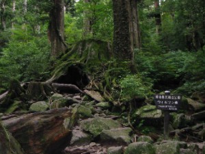 縄文杉ツアーの団体さんは、6:00に出発地の荒川口集合が多いという情報を事前に仕入れていたので、3:30に起床し4:20に宿を出発5:20に出発地点の荒川口に到着した。まだ4・5台ほどの車しか来ていない。薄暗い中、岩の上に腰を下ろし、宿に用意してもらった朝食の弁当を食べていると、空が白みはじめてきた。軽く体操をした後、5:50いよいよ出発。途中屋久猿や屋久鹿に出会いながらトロッコ道を歩いていく。トロッコを走るところを見ることが出来たらラッキーと言われているように、まずトロッコは走ってこない。トロッコが走るのだから、急勾配ではないが、確実に標高が上がっていくのを感じることが出来る。高いところが苦手な者にとって最大の難所はなんと言っても橋である。大きい物で3つある。高い・長い・手すりがない、小杉谷小中学校跡の手前の橋が最悪だ。回りを見ないように意識すると余計クラクラしてくる。帰りもこの橋を渡るのかと思うと今から憂鬱である。風のある日は絶対引き返していただろう。そんな中で途中で会った、屋久猿と屋久鹿は一服の清涼剤となった。 8:00にトロッコ道から外れて大株歩道と呼ばれている山道に入っていく。基本的には歩道があり、整備されていてまず迷うことはないが、ときおりコースがここで良いのだろうかという不安な箇所もあった。また、結構勾配があり、ペースを落とさなくてはつらい。 8:17著名なウィルソン株に到着。トロッコ道からの17分はつらかった。ここで初めての水分補給。500mのペットボトルを一気に飲み干してしまった。木々の中を歩いてくるので直接太陽に当たるところは少ないが、首の辺りが結構熱くなっている。この時点でK君とは別行動になってしまった。アップダウン(ほとんどがアップであるが)を繰り返し、いくつの著名な杉を鑑賞しながら、ついに9:33ついにあの縄文杉に到着した。先客に1組のカップルと1人旅の若者がいた。いくつものそこそこの大きさの杉をここに到着するまでに見てきたためか、1日目のカニよりも感動がうすい。あぁ、年を重ねると感動が薄れてくるのでしょうか。しばらくすると、監視員や観光客がぞろぞろ到着してきた。混雑時には撮影ポイントが決められているのだが、K君は人が少ない為か撮影ポイントに腰を下ろし、宿で用意してもらった昼食を食べはじめた。監視員はK君の回りを、にらみを利かせながら徘徊していたが、そんなことには動じずもくもくとマイペース。1日目の平内海中温泉の時といい、K君にはいつも驚かせられる。すごいよあんた。1時間ほど縄文杉を鑑賞して下山の徒についた。 憂鬱であった橋は思いの外スムーズに渡ることが出来て、自分でもビックリだ。疲労で感覚が麻痺していた為なのかもしれない。3時を少し回った頃には無事出発点の荒川口に到着、車に乗り込んで帰路についた。 1日目に入ることが出来なかった大浦温泉に立ち寄り宿に戻る。その日は部屋にて整体を受けた。初めての整体体験で、かなり良かったと思う。横ではK君がニヤニヤしながら一部始終を眺めていて、時折写真を撮っていた。右足小指にでかいマメが出来てしまい明日が心配。 |