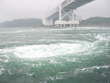 関東地方は曇りであったが、徳島空港に降り立つと雨が降っていた。さっそく新横浜らーめん博物館に出店して一躍有名になった徳島らーめんを食する。その店の名はらー博出店中の「いのたに」だ。肉入り中華そばを食する。次はいよいよ今回のツアーのメインイベントの鳴門へ渦潮を見に行く。鳴門大橋の自動車道の下の「渦の道」という展望通路に入場料を払って入場。通路の一部が強化ガラスとなっており、そこから下を眺めることが出来る。このガラスの上に足を乗せるには結構びびってしまう。ここから海を見下ろすと、さわさわと渦が巻いているかなという感じだ。おぉ、観潮船もいるぞ。続いてあらかじめ予約していた観潮船に乗るために、少し離れた場所にある船乗り場に向かう。受付をすまし時間が来るのを待って、雨の鳴門海峡に向かう。平日で梅雨の季節の為か、客は自分たちを含め3人しかいなかった。自分の予想していた鳴門の渦潮は、グルングルン渦が発生しまくっているという先入観を持っていたが、実際はじわじわと渦が涌いてくるという感じだ。それでも自然の雄大さを実感するには充分であった。満足満足。 今夜の宿泊地の高松に向かって車を走らせる。途中「屋島第一健康ランド」に立ち寄り、ホテルにチェックイン後、さっそく夕食のさぬきうどんを求め、あらかじめチェックしておいた市街地のうどん屋2店をはしごしてから、「高松ぽかぽか温泉」に。そうこうして無事一日目の夜が更けていったのであった。 |