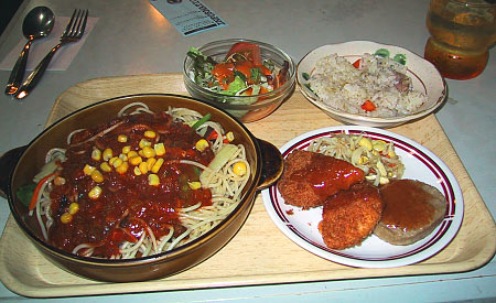 漫画喫茶なのですが、850円なりでトレイ一杯のメニューが出て来ます。