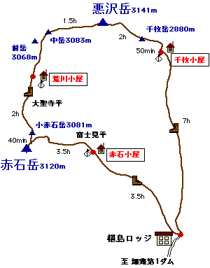 千枚岳(7:15)〜悪沢岳(9:30)〜中岳〜前岳〜荒川小屋テント場(13:45)泊