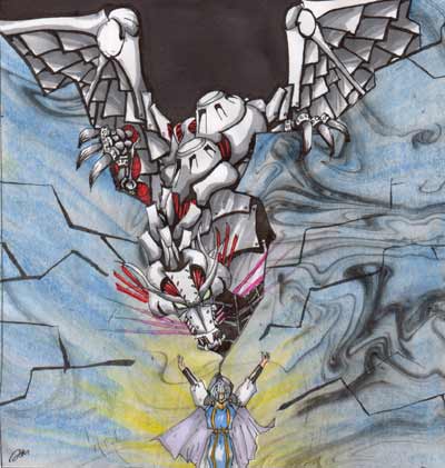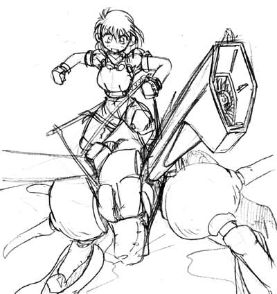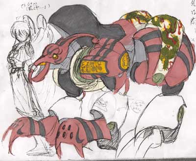 here. "Northern" has the function generally transformed from the human being type "SLAVE MODE" to the animal type "BEAST MODE". It usually acts with "BEAST MODE". It is possible that it saves the power at the time of this form, and besides, it puts a human being and it is moved. It is transformed in "SLAVE MODE" at the time of the battle, and a human being goes into the inside, and operated. A human mind and "LIVE LIQUID" can increase ability in the time of "SLAVE MODE" by accessing it. As for the height of the time of "SLAVE MODE", the height of the time of "BEAST MODE" is about 2m about 4m. It is general with "BEAST MODE" to restrain it in the size of about 2m to make employment easy specially. ここでは「北方系」と呼ばれる「ドラグーン」を例にとって説明しよう。 ・「北方系ドラグーン」は、一般的に人間タイプ「スレイヴモード」から動物タイプ「ビーストモード」へと変形する機能を備えている。 ・通常は「ビーストモード」で行動している。この形態の時は動力をセーブしており、なおかつ人間を乗せて移動する事が可能だ。 ・戦闘時は、「スレイヴモード」に変形し、人間が中に入って操作する。 ・「スレイヴモード」の時は人間の精神と「ライヴリキッド」がアクセスすることで、能力を増加させることができるのだ。 ・「スレイヴモード」の時の身長は約4メートル、「ビーストモード」の時の高さは約2メートルである。 ・特に運用を容易にするため、「ビーストモード」は2メートル程度の大きさに抑えるのが一般的である。 |