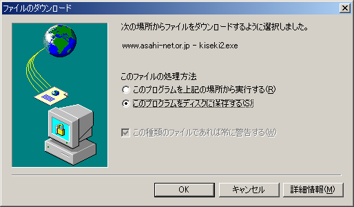 kiseki2.exeをダブルクリックしてファイルを自動解凍します。 |