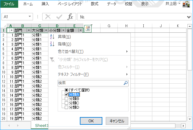 この方法により、このようにフィルターで条件抽出しても、「連番」が維持されます。