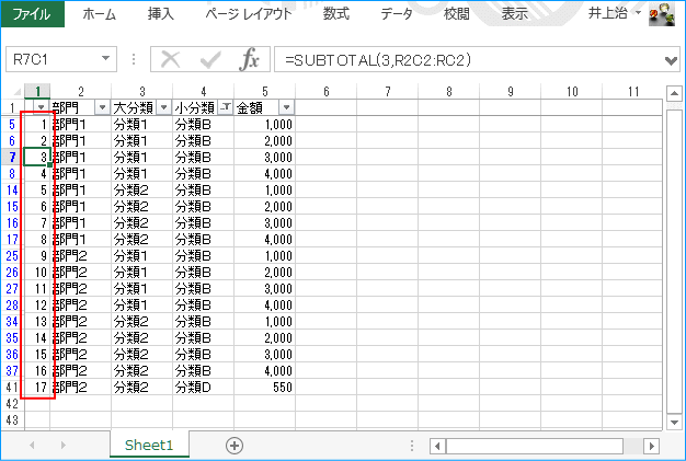 もっと欲張って、フィルターで抽出しても「連番」を維持させてみます。