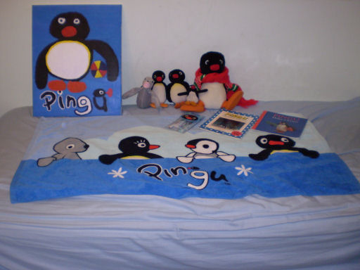 The canvas on the left I painted myself. The pingu plush, towel and pencil case i bought off ebay. The books i got from the book shop. Everyone in Australia loves Pingu NUG NUG.