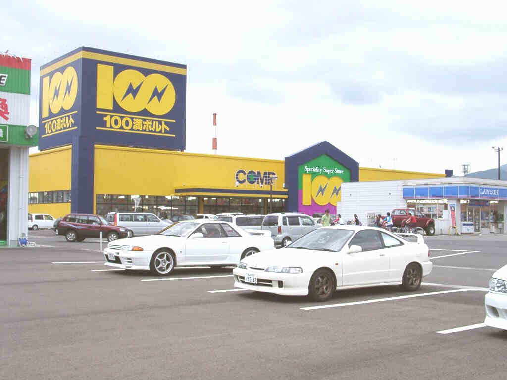 木崎通りの大型電気店「100万ボルト」 |