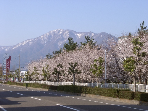 桜並木と野坂山(東洋紡工場前から望む野坂山) |