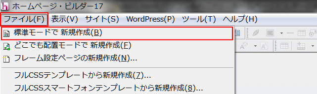 ① メニューの [ファイル] → [標準モードでの新規作成] を選択します。