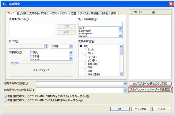 ③ [スタイルシートマネージャーで編集] ボタンをクリックします。