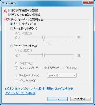 A: クリック音を使用する / テン キーを有効にする