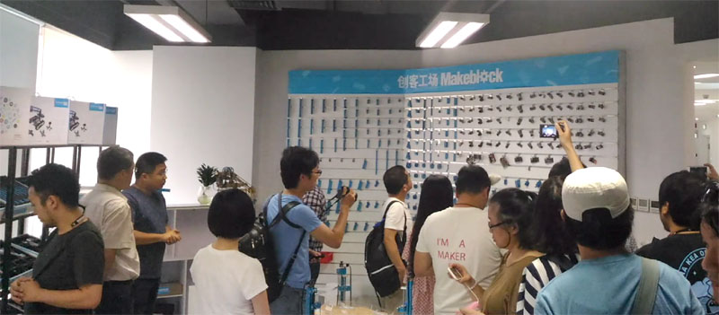 深圳にたくさんある企業のうち、比較的成功している企業で、社長さんも社員さんもわかく、オフィス内もシリコンバレーのような感じです。MakeBlockは会社の名前でもあり、製品の名前でもあります。