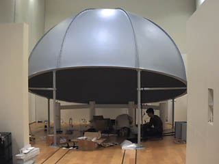 1999年に開催されたICCビエンナーレで、メディアアーティストの近森さんのプロジェクトに参会させていただきました。プラネタリュウムのドームの中に色のついた玉が置いてあって、その色の組み合わせで色々なアニメーションが投影されます。プログラム部分は、Java