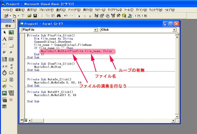 | MusicOcxは、VisualBasicや、VBA,Directorなどを使用して、プログラムからMIDIファイルの再生や発音を行なわせるためのモジュールです。 |